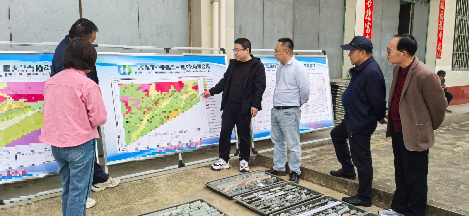 3月27日,调研组前往西乡县蔡家梁金矿勘查项目部,现场观摩钻探工程、查看岩芯,直观掌握项目施工进展,并听取项目工作汇报,围绕2026年勘查目标、资源量估算、开发价值评价等关键工作进行深入研讨。蔡家梁金矿勘查项目是二一四队落实集团发展战略、推动从传统核地质勘查向矿业经济实体转型的重点支撑项目,目前已基本查明成矿地质条件,圈定多条金矿体,后续将聚焦深部勘查、专题研究及资源量精准估算等重点任务加快推进。