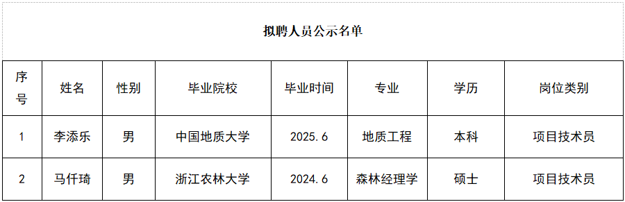 经过规定招聘程序,现将公司拟聘人员名单予以公示。在公示期内如有异议,请向有关部门反映。