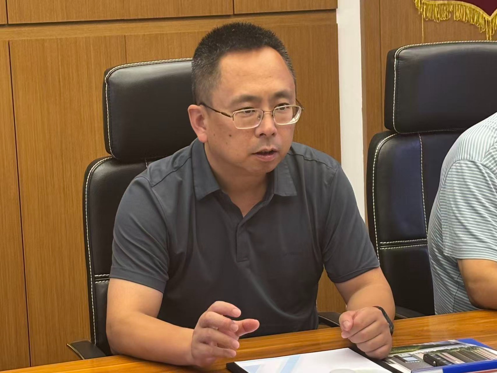 座谈会上,付星首先系统阐述了黄泥坪金矿项目的前期规划布局与长远发展蓝图。他着重围绕 “绿色、安全、高效” 三大开发理念,结合项目资源禀赋、建设条件及技术路线进行深入剖析,公司随行技术团队同步开展技术交底,详细说明矿山建设的预期规划、产能需求及关键时间节点,为长沙院精准编制可研报告提供全面支撑。
