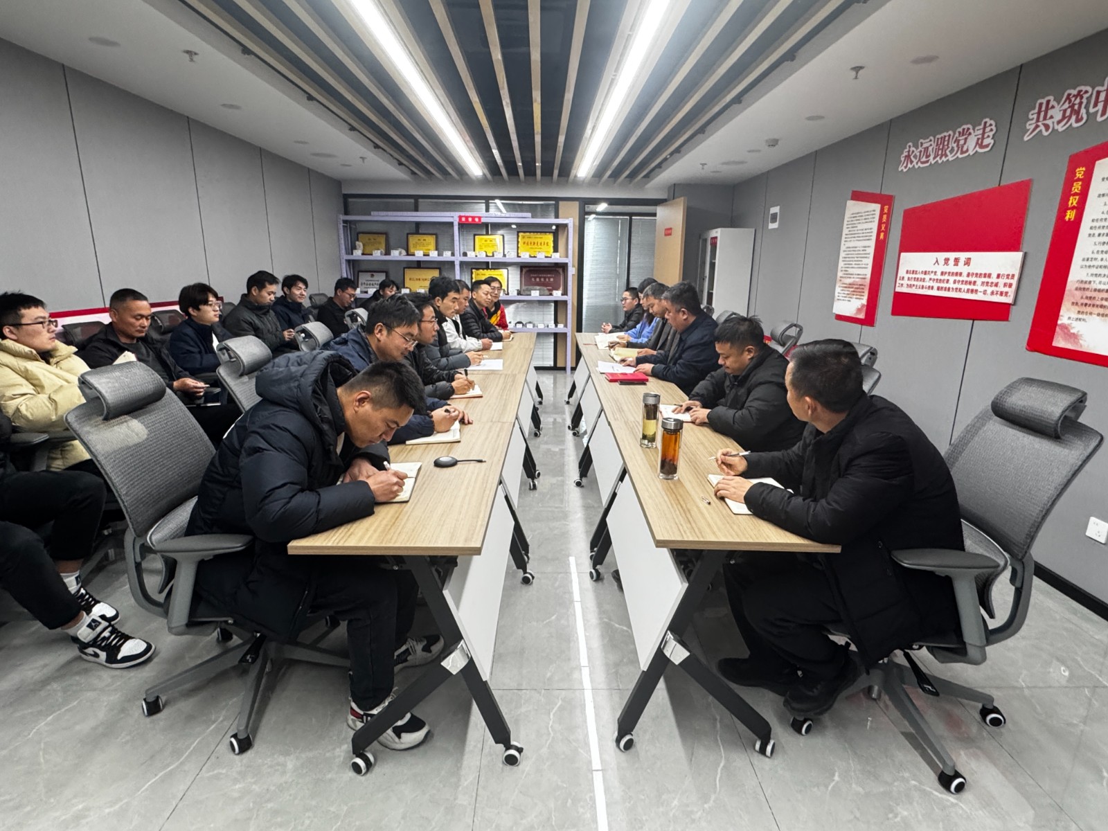 为深入推动党的二十届四中全会精神在基层单位落地生根、深入人心,切实把干部职工的思想和行动统一到全会决策部署上来,12月17日,中陕核二一四队党委委员、总经理王朋深入物化探院党支部开展党的二十届四中全会精神专题宣讲会。宣讲会由物化探院党支部书记、院长王汉民主持,物化探院全体党员、职工代表参加会议。
