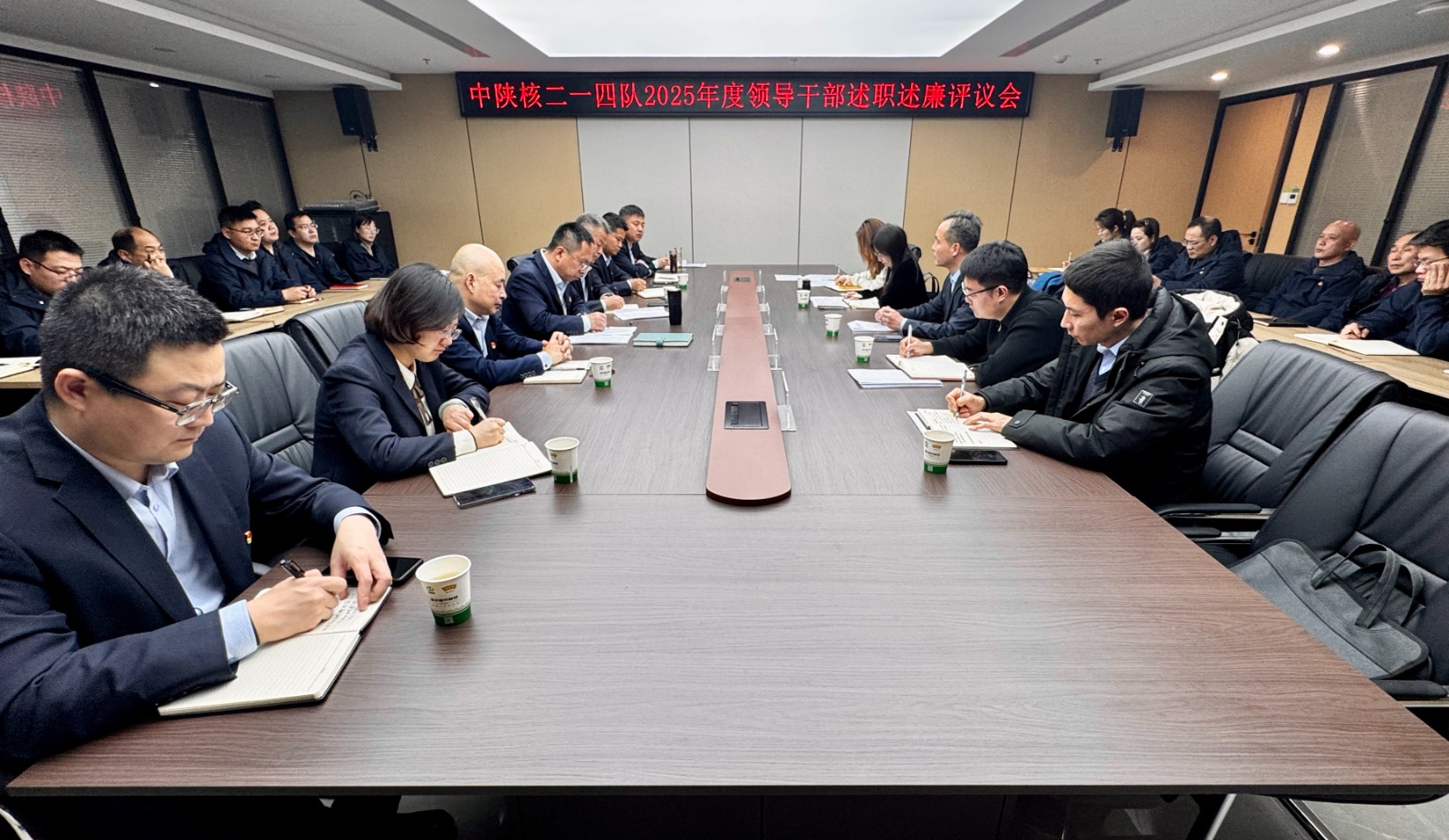 按照中陕核集团党委统一部署,12月30日下午,中陕核二一四队召开了2025年度领导干部述职述廉评议会,集团公司党委副书记冯凯出席会议并讲话,会议由集团党委工作部副部长治蕾主持。集团公司第四考核组成员、公司领导班子成员、中层正职及部分职工代表参加会议。