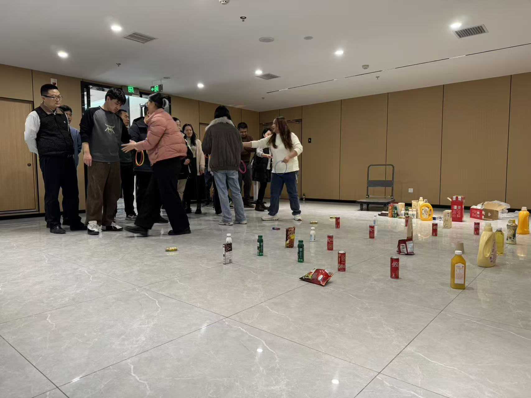 套圈比赛区域尤为热闹。职工们屏住呼吸,瞄准目标,轻轻一掷,时而精准套中目标,引来周围阵阵欢呼;时而略有偏差,大家便相互鼓励、出谋划策。无论是精准命中的“套圈高手”,还是初次尝试的“新手小白”,都沉浸在游戏的乐趣中,手中的套圈不仅套住了心仪的礼品,更套住了满满的快乐与温馨。现场还设置了不同难度等级的目标区域,兼顾了趣味性与挑战性,让全体职工都能沉浸式享受活动乐趣。
