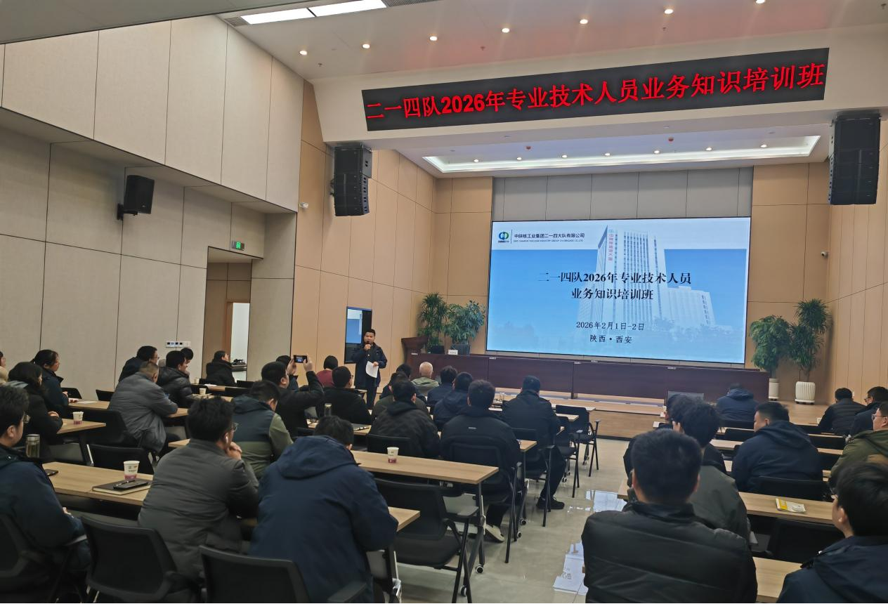为持续提升专业技术人才队伍核心竞争力,精准对接行业发展前沿趋势,夯实高质量发展人才根基,营造技术人员互学互鉴、共同提升的良好氛围,2026年2月1日至2日,中陕核二一四队总工办(技术质量部)联合人力资源部,在中陕核资源大厦举办2026年度专业技术人员业务知识培训班。公司80余名专业技术人员齐聚一堂、潜心研学、共促提升。培训由公司总工程师高政伟主持,党委书记、董事长付星出席并讲话。